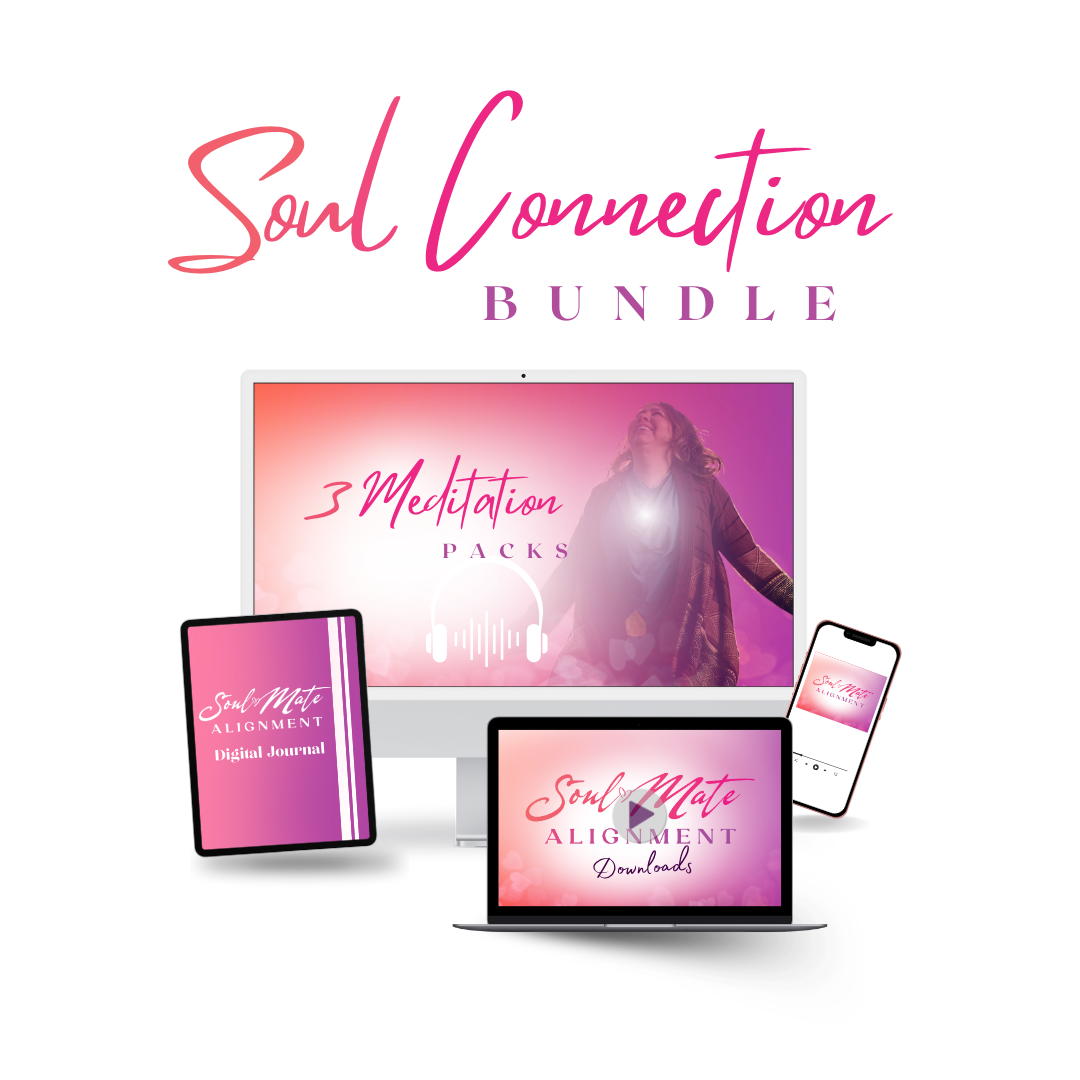 Amplify your journey toward your soul mate connection with the Soul Connection Bundle—a transformative collection of a custom journal, soul mate meditation, partner meditation and download meditation crafted to support you in aligning with your soul mate following the webinar.